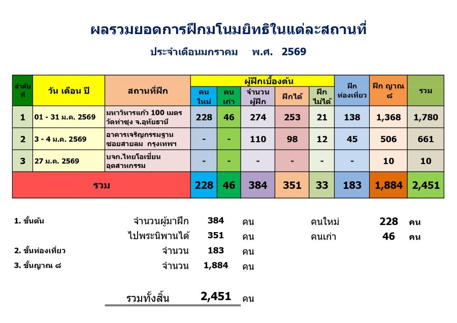 ผลรวม...ยอดการฝึกมโนมยิทธิแบบครึ่งกำลัง ในแต่ละสถานที่